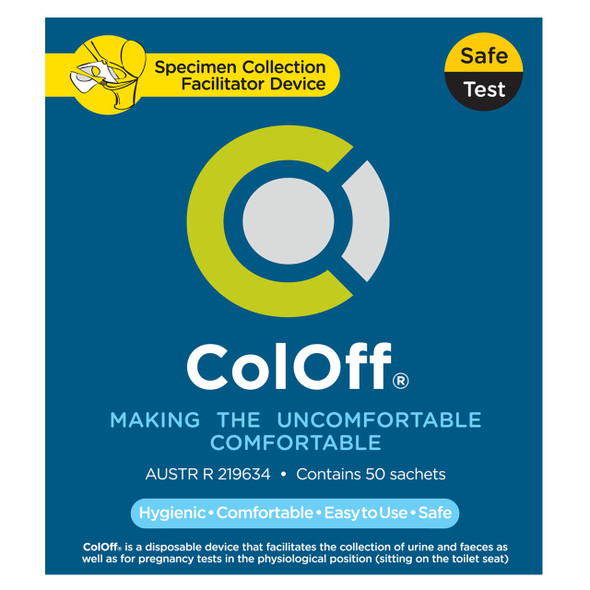 ColOff is a disposable medical device that facilitates specimen collection in the physiological position (sitting on the toilet seat) such as: